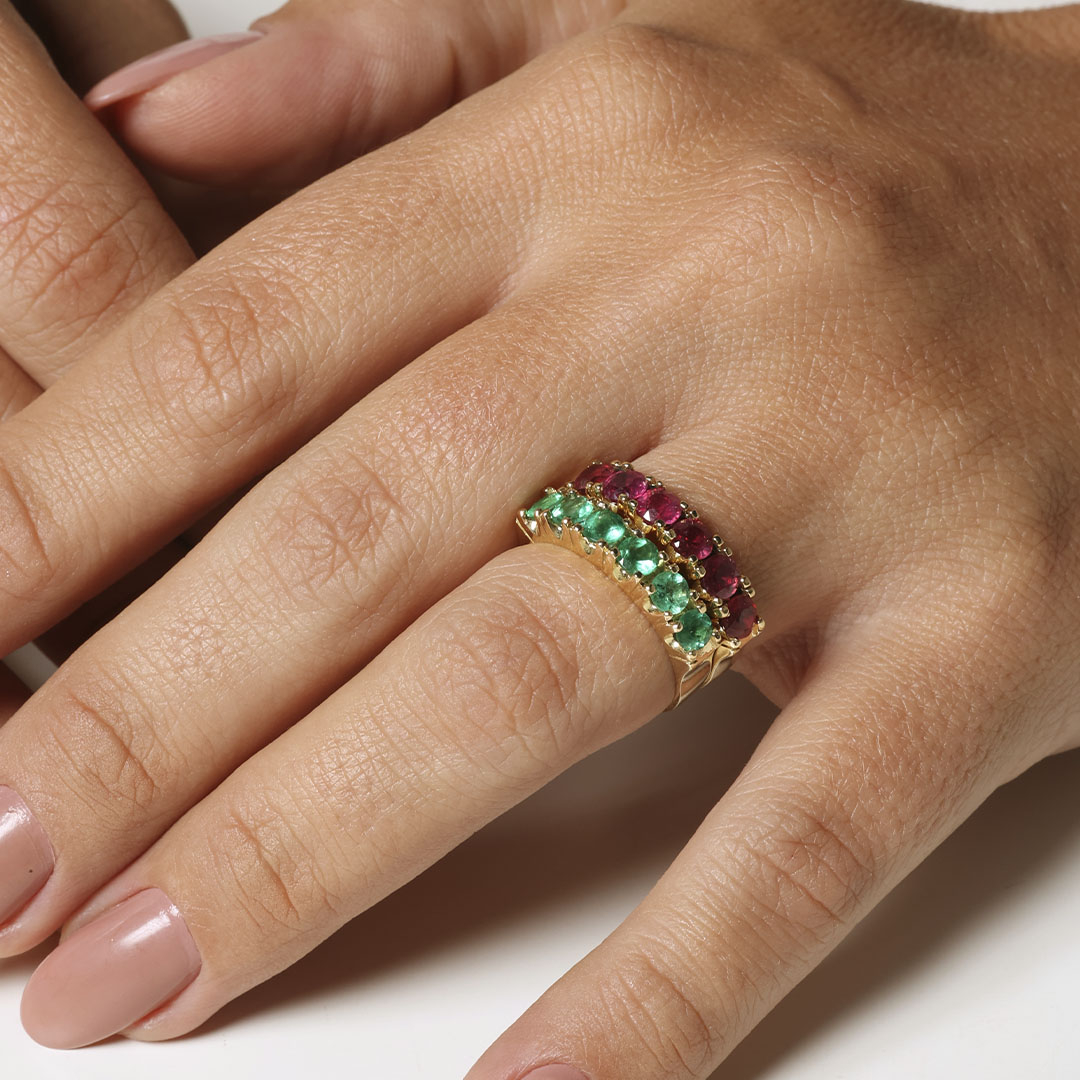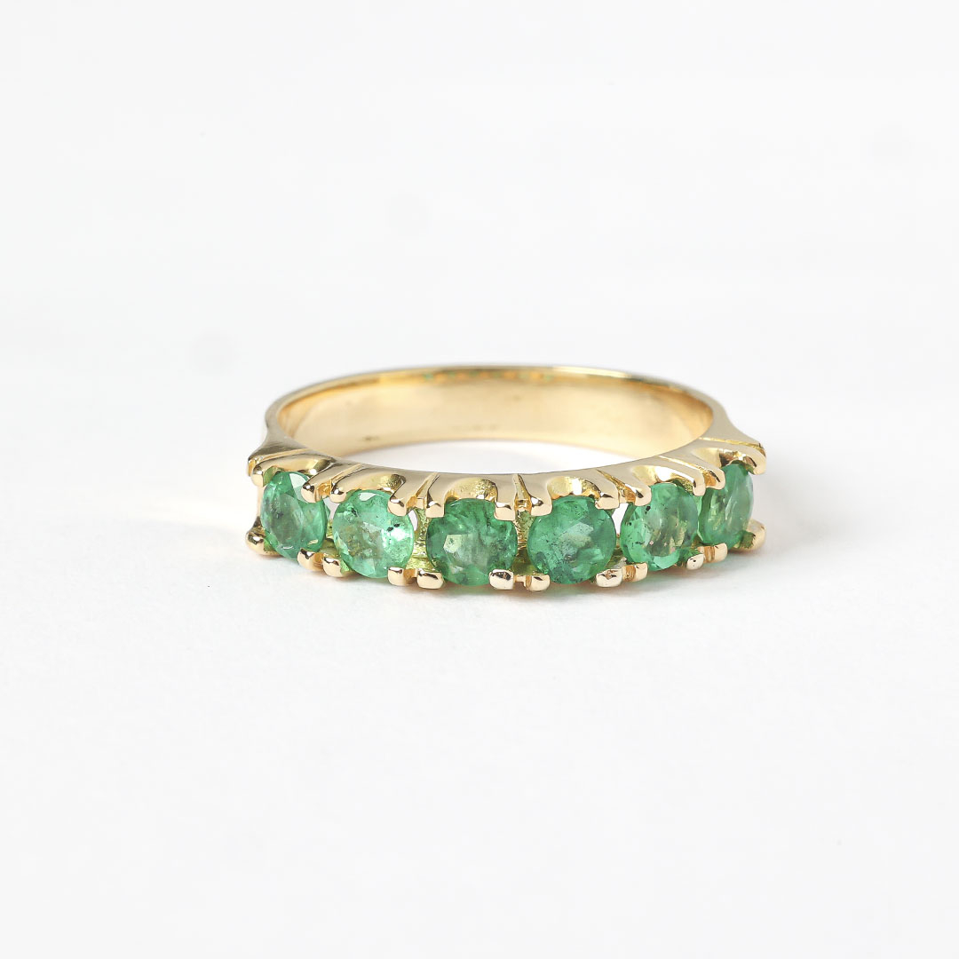 Meia Aliança ouro amarelo com esmeraldas